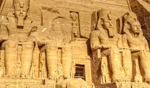 O Magnifico Templo de Abu Simbel no Egito. A cerca de 300 quilômetros no sul de Aswan está localizado o magnifico templo de Abu Simbel,